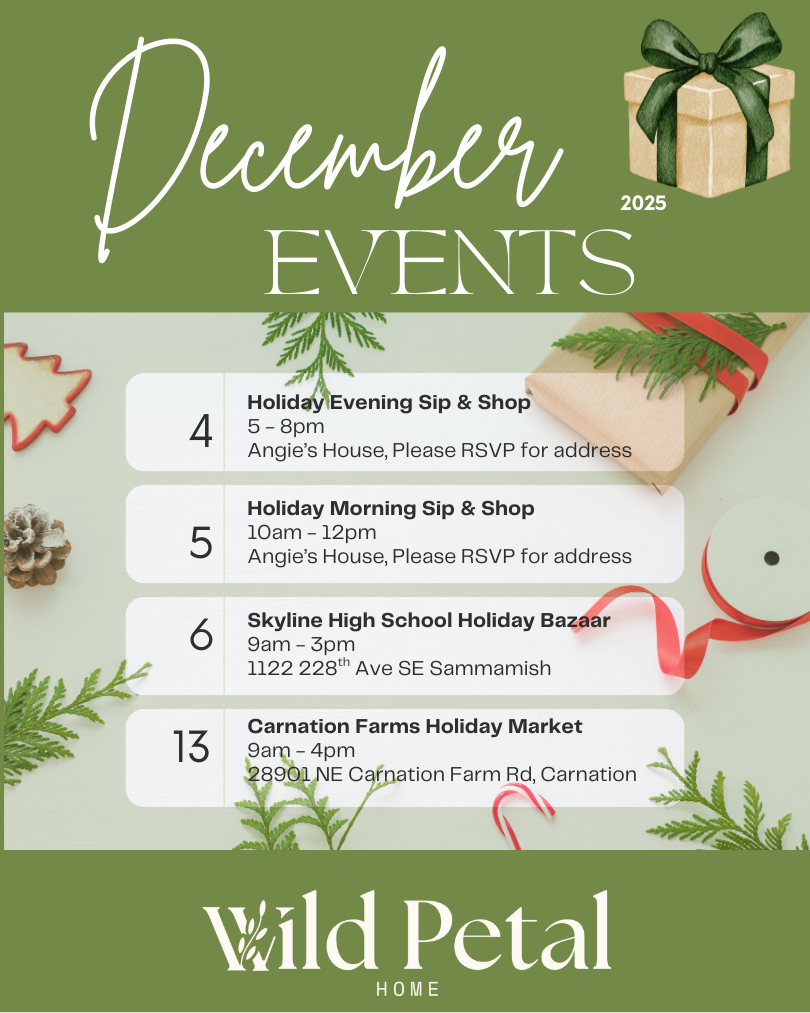 Enter your email address for early access to new product launches, VIP specials, sip & shop events, and market schedules for Wild Petal Home.