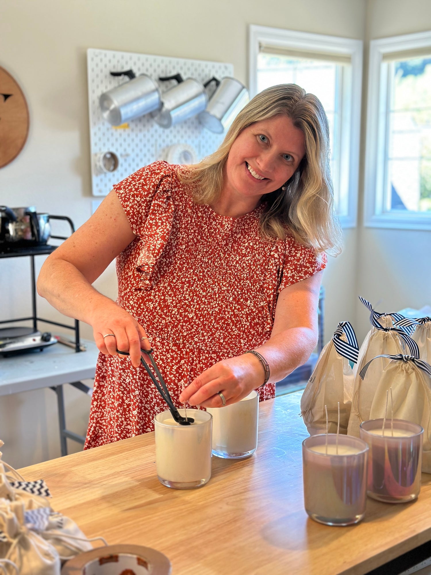 While my candle business is relatively new, I've always sought out ways to be creative. As a little girl, I wrote and illustrated little "books", which I sold to my mom for 25 cents apiece. You were more likely to find me painting, crafting, and exploring outside than playing with toys. As I grew up, I began preserving flowers and making wreaths, a few of which I gave to my bridesmaids before my wedding to my amazing husband, Andy.
