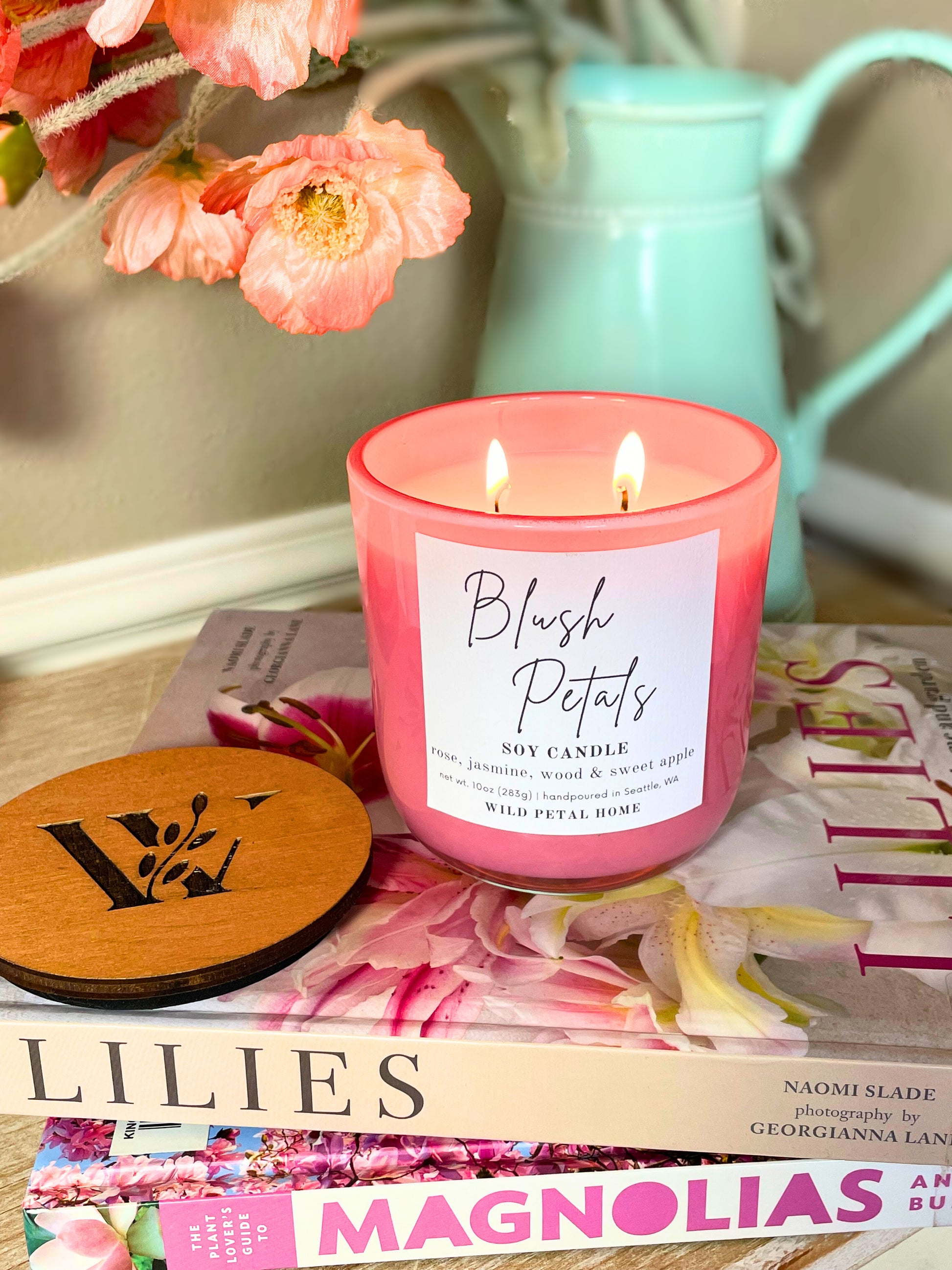 OUR PROMISE We promise to use eco-friendly ingredients for a luxurious home fragrance experience. Wild Petal candles are handcrafted with natural soy wax, a clean burning, plant-based & renewable resource. Produced in the USA. Soy has an incredibly long burn time. Burn between 2-4 hours each session, as described in our Candle Care.